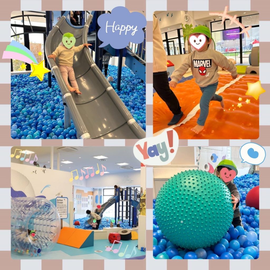 ボールプールのコーナーでは、すべり台を滑ってボールの海へ飛び込み、最高にいい笑顔を見せてくれました♡
